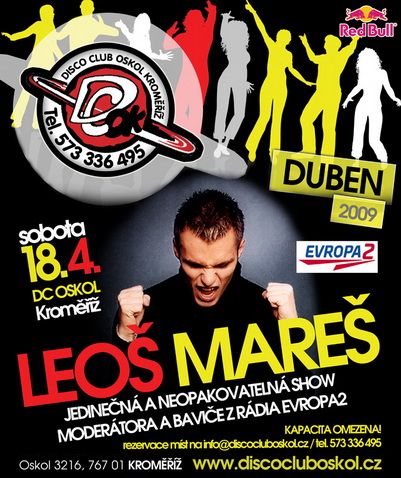Showmen a moderátor rádia EVROPA 2 LEOŠ MAREŠ jede na DC Oskol, Kroměříž!